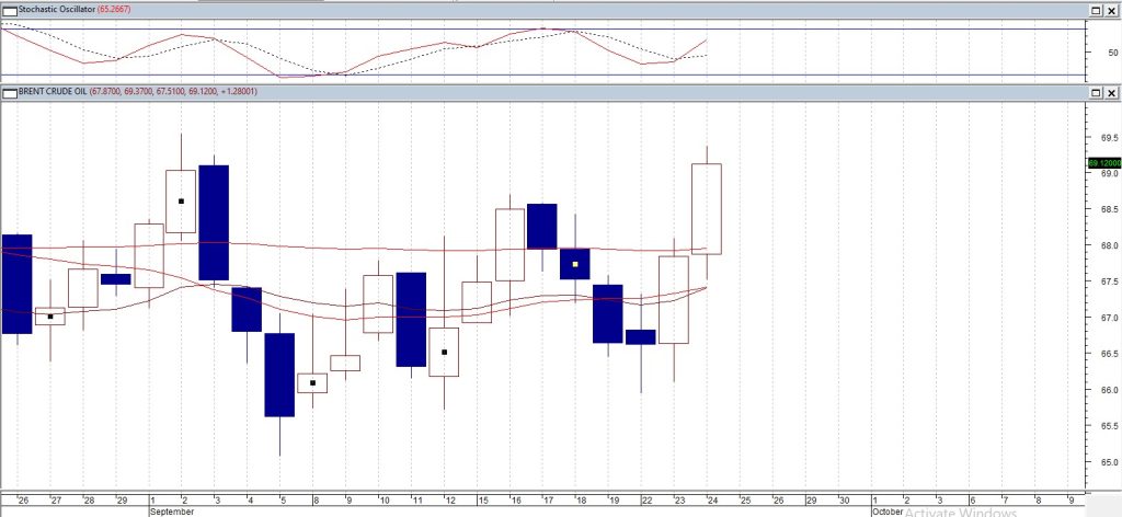 Harga minyak naik sekitar 3% ke level tertinggi dalam tujuh minggu pada hari Rabu (24/9) karena penurunan mengejutkan dalam persediaan minyak mentah mingguan AS menambah kekhawatiran di pasar akan pengetatan pasokan di tengah masalah ekspor di Irak, Venezuela, dan Rusia. Persediaan minyak mentah AS turun secara mengejutkan sebesar 607.000 barel pekan lalu, menurut Badan Informasi Energi (EIA). Angka tersebut sebanding dengan perkiraan analis dalam jajak pendapat Reuters mengenai peningkatan produksi sebesar 235.000 barel, tetapi lebih kecil dari perkiraan pasar sebesar 3,8 juta barel, menurut sumber-sumber yang dikutip oleh kelompok perdagangan American Petroleum Institute dalam angka-angkanya pada hari Selasa. Harga minyak juga mendapat dukungan dari berita bahwa militer Ukraina menyerang dua stasiun pompa minyak semalam di wilayah Volgograd, Rusia. Keadaan darurat diumumkan di kota Novorossiisk, Rusia, yang merupakan pelabuhan utama Rusia di Laut Hitam dan memiliki terminal ekspor minyak dan biji-bijian utama. Rusia mengalami kekurangan bahan bakar jenis tertentu karena serangan pesawat nirawak Ukraina mengurangi operasional kilang, menurut para pedagang dan pengecer, setelah Ukraina meningkatkan serangan pesawat nirawak terhadap infrastruktur energi untuk mengurangi pendapatan ekspor Moskow