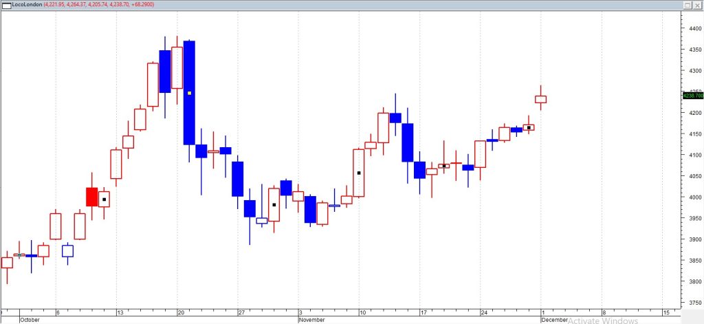 Emas (XAU/USD) melanjutkan penguatan beruntun untuk sesi perdagangankedua pada hari Senin (1/12)